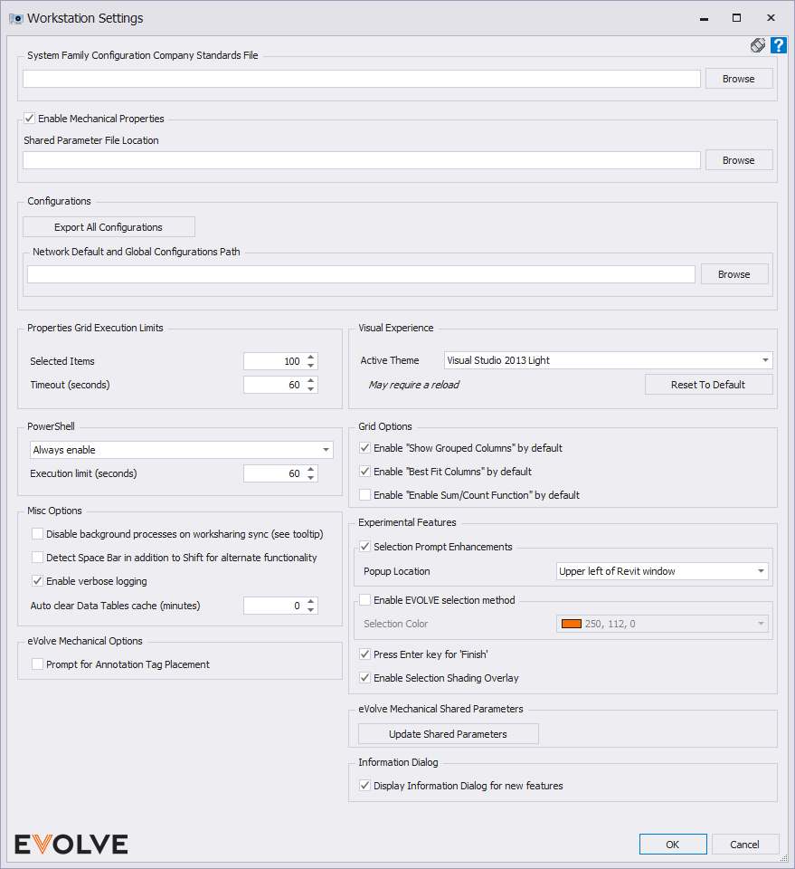 - Shared Parameter file Location - This location must be accessible and configured for other users of eVolve Mechanical during collaboration.